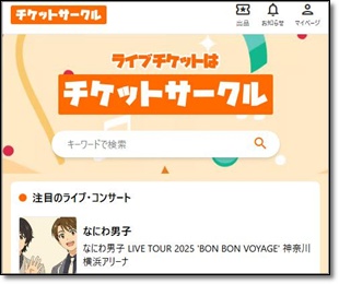 ライブ・コンサート・舞台・スポーツなどのチケットを個人が出品・購入できるサービス。